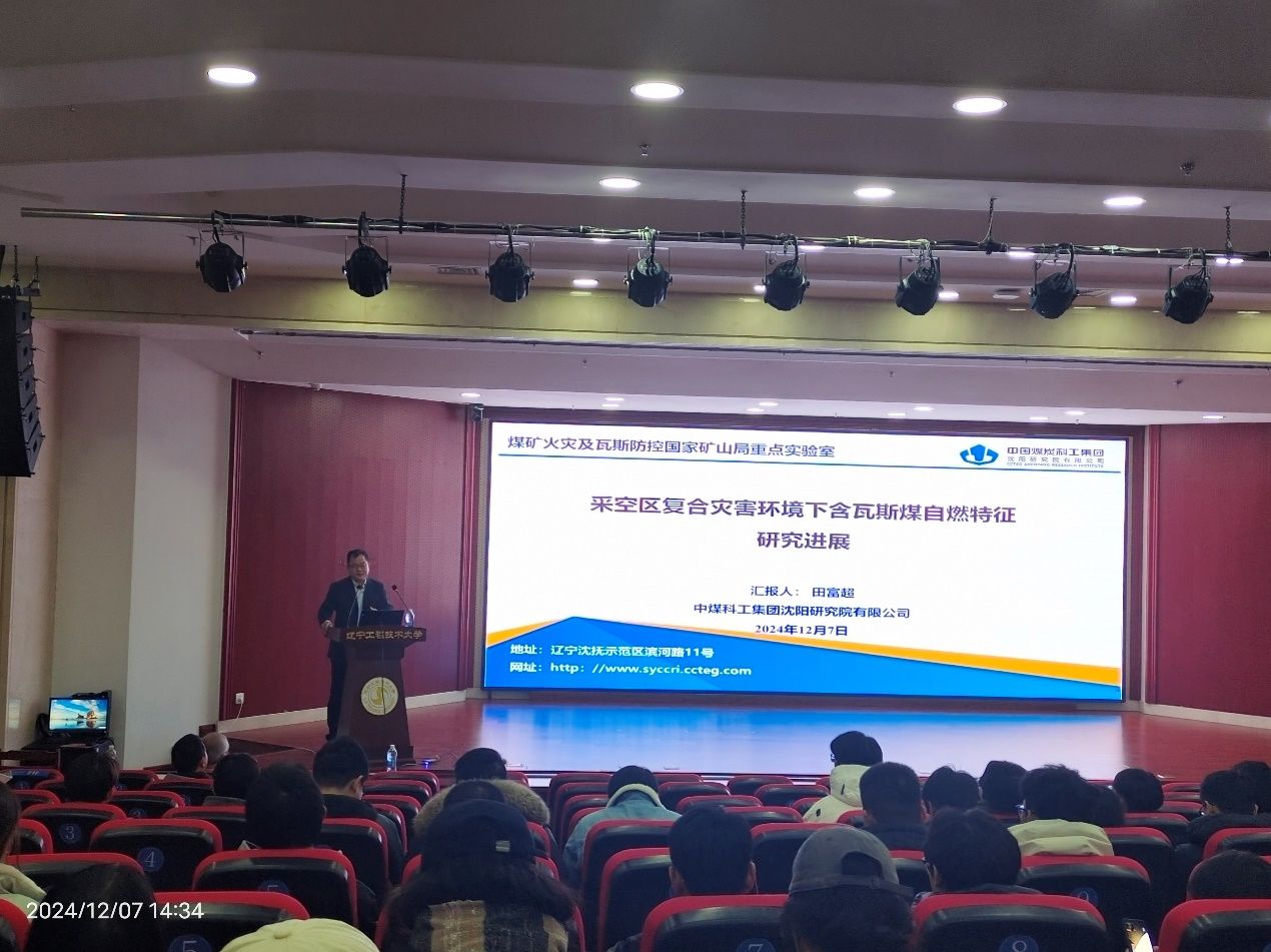2024年12月7日下午,煤炭科学研究总院沈阳研究院田富超研究员应邀莅临我院展开学术交流。田研究员带来了题为“采空区复合灾害环境下含瓦斯煤自燃特征研究进展”的精彩报告,会议由英国正版365官方网站院长周西华教授主持。我院教师以及近300名研究生齐聚一堂,共同聆听了这场报告。